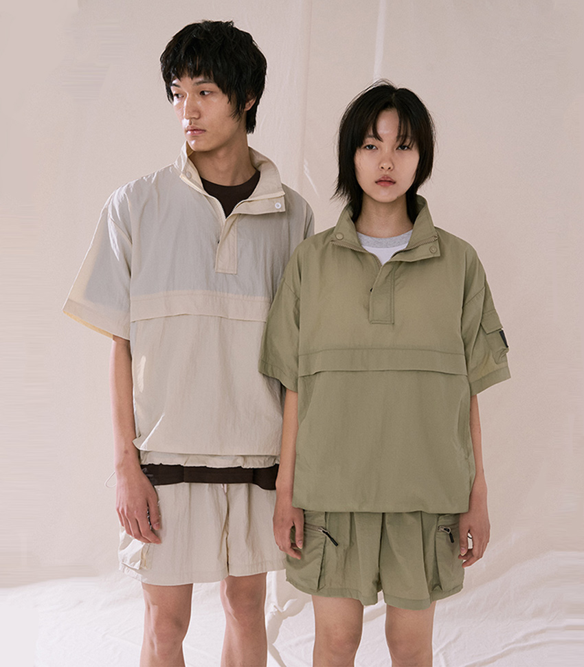 Hoody Anorak Half Set-up(Beige) CSOs-010 [Unisex]
