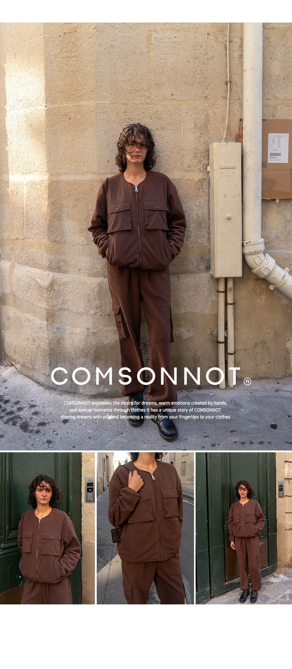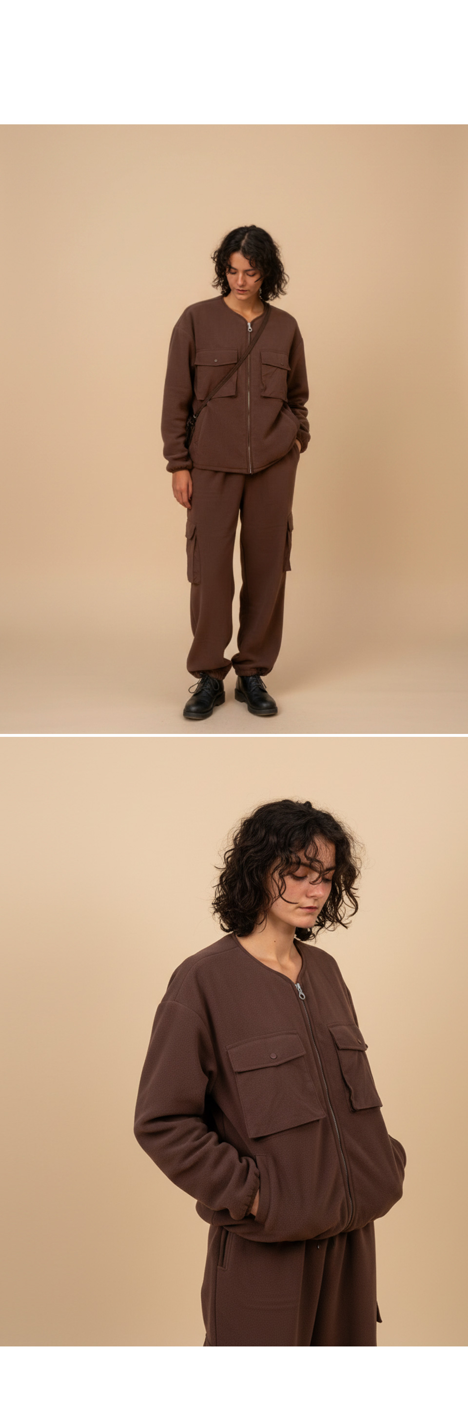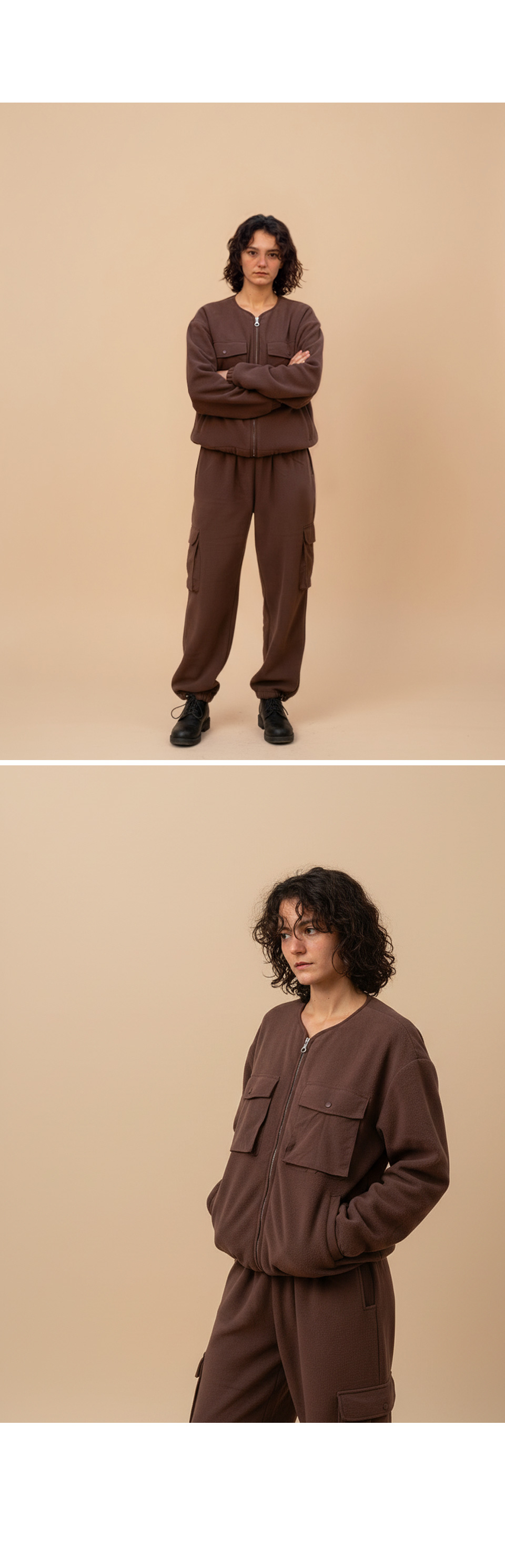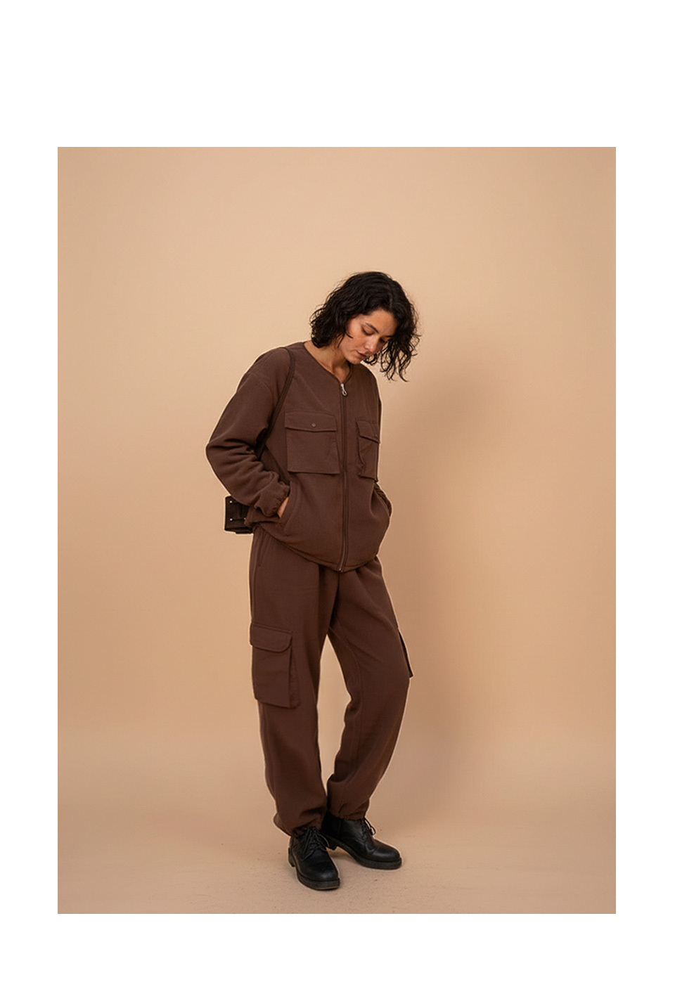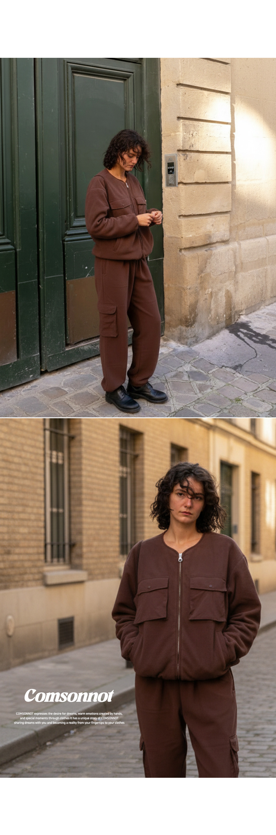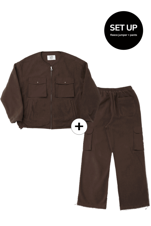 Fleece Jumper Wide Pants Set Up CSOs-019 (brown)