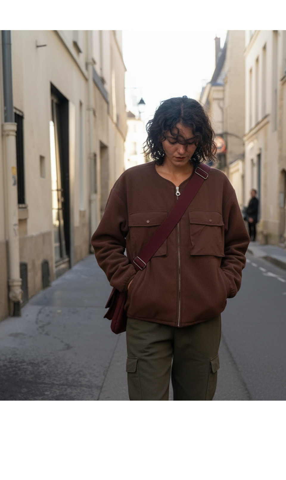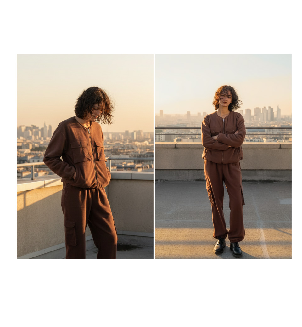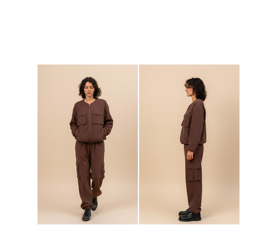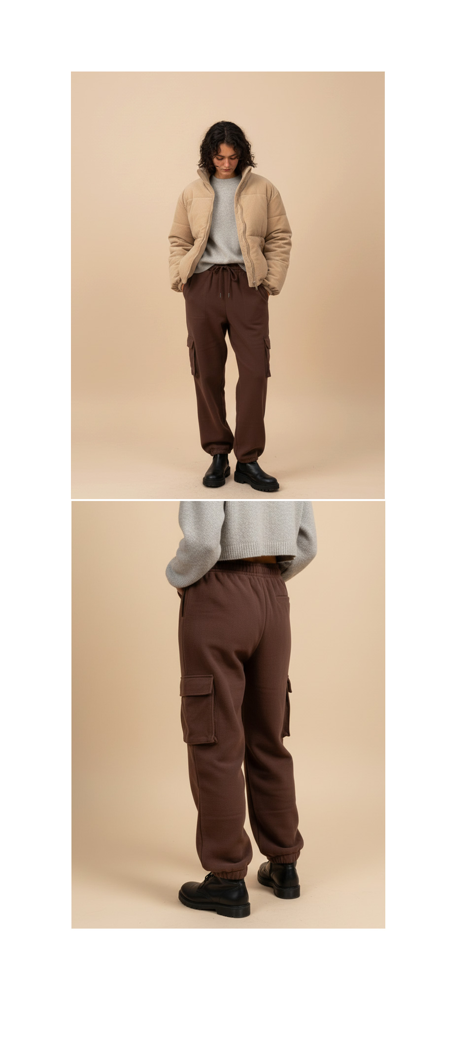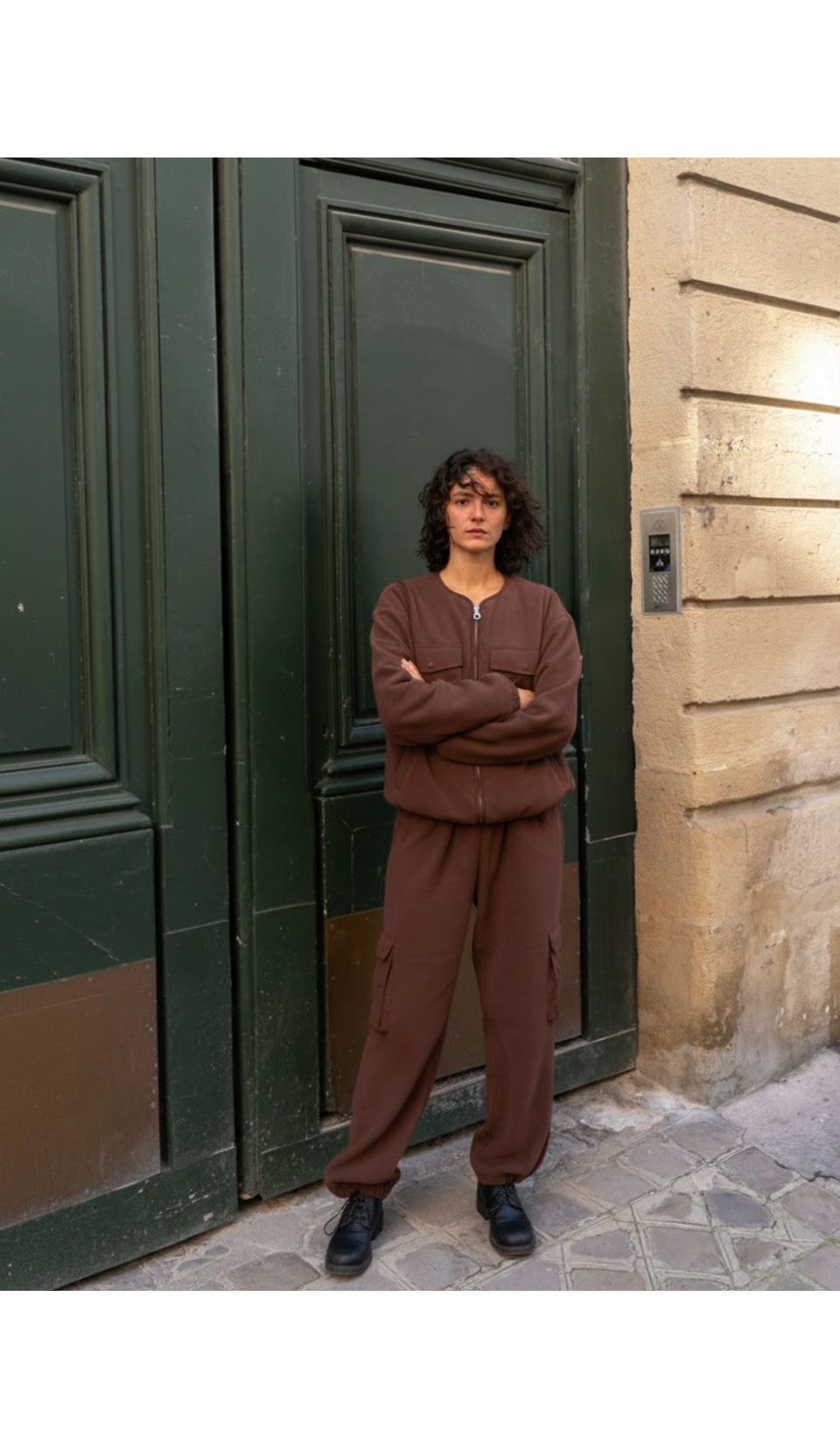 Fleece Jumper Wide Pants Set Up CSOs-019 (brown)