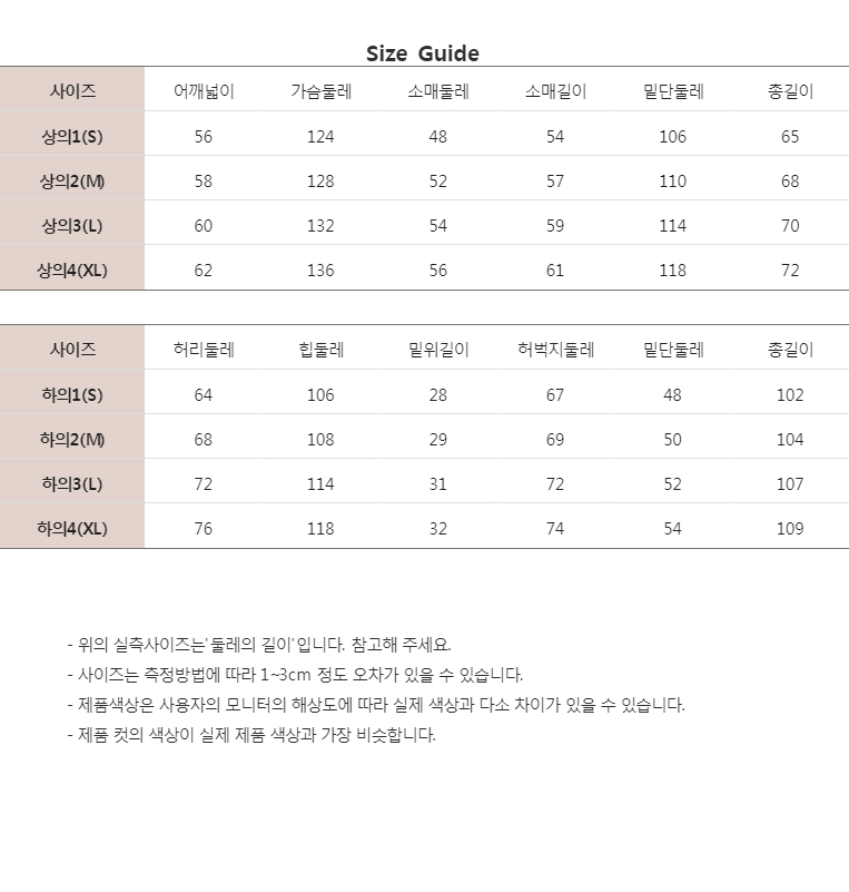 ※ 상품사이즈 치수는 재는 방법과 위치에 따라 1~3cm 오차가 있을 수 있습니다.