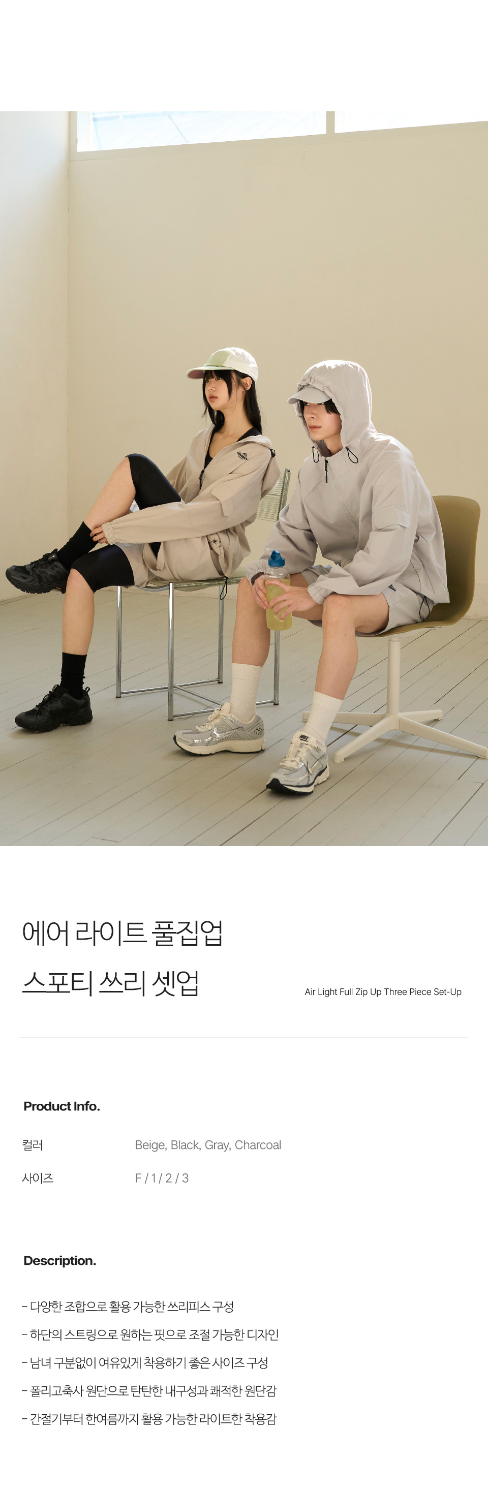 Air Light Full Zip Up Sporty 3-Piece Set Up (charcoal) CSOs-021