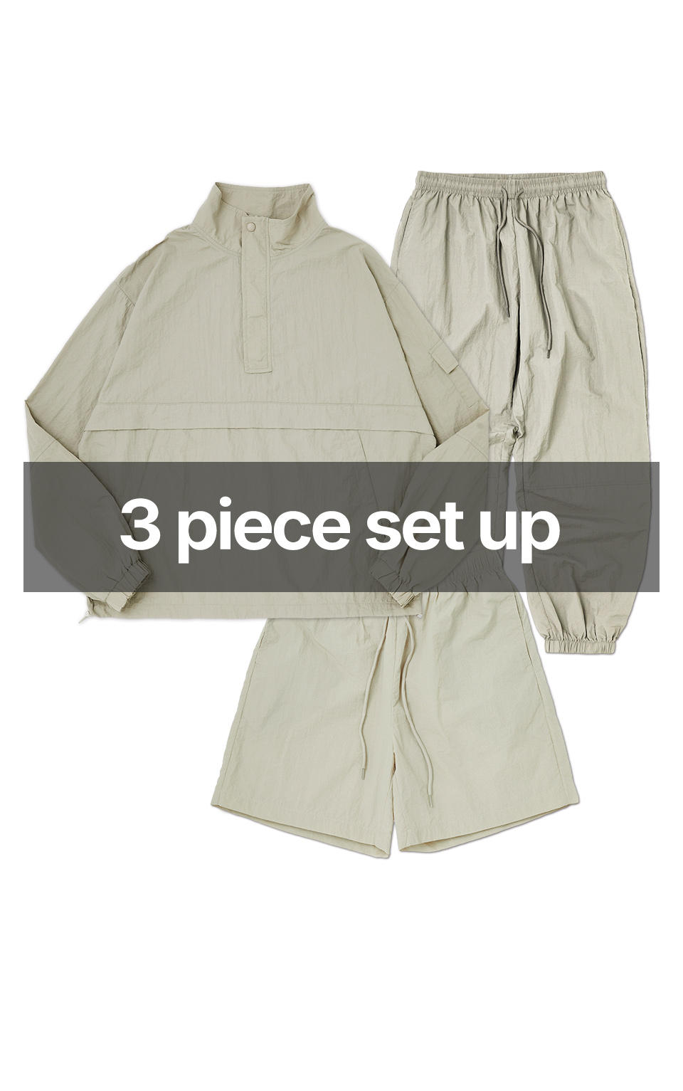 High Neck Anorak 3-Piece Full Set Up (Khaki) CSOs-004