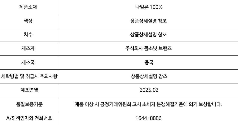 ※ 상품사이즈 치수는 재는 방법과 위치에 따라 1~3cm 오차가 있을 수 있습니다.