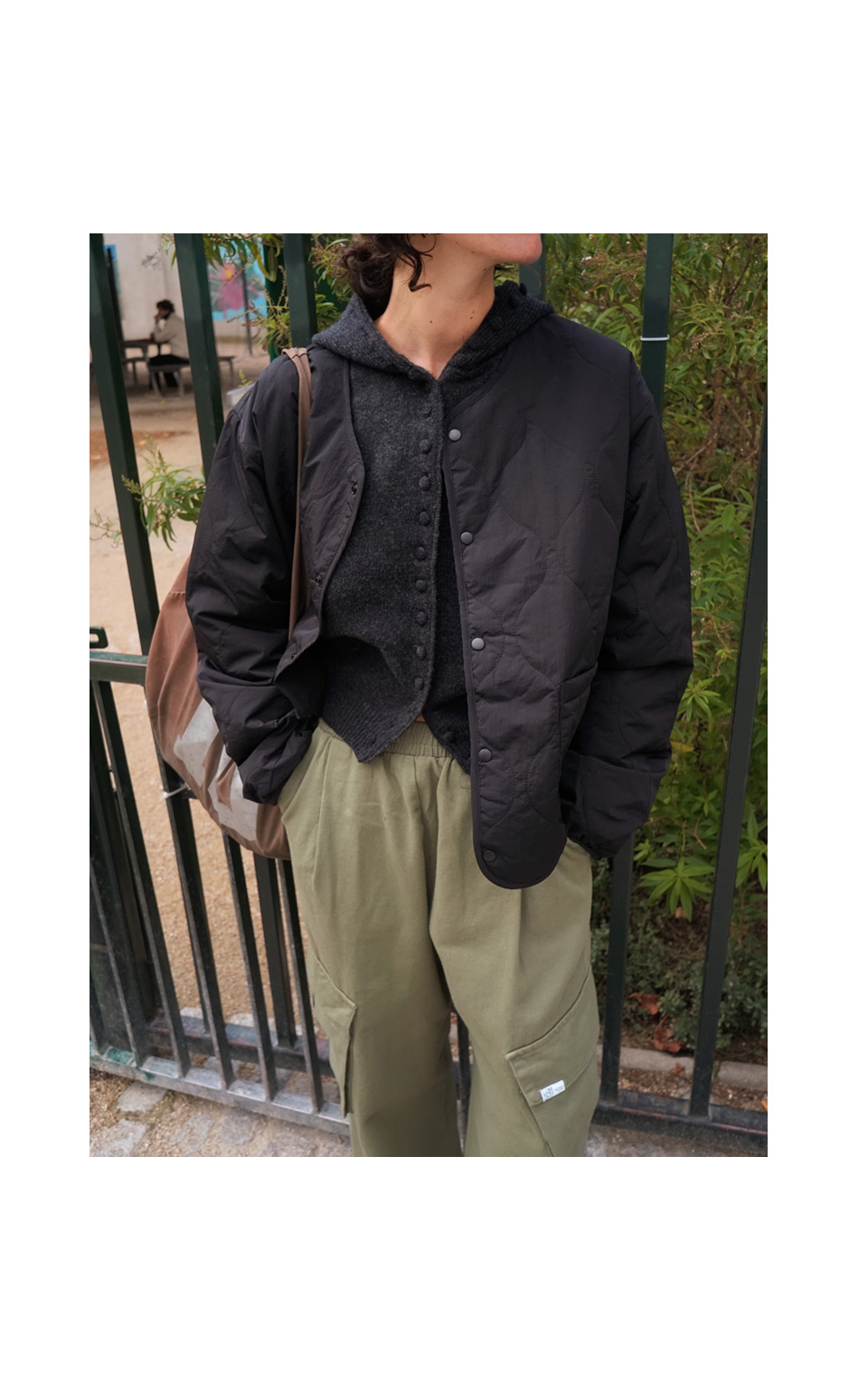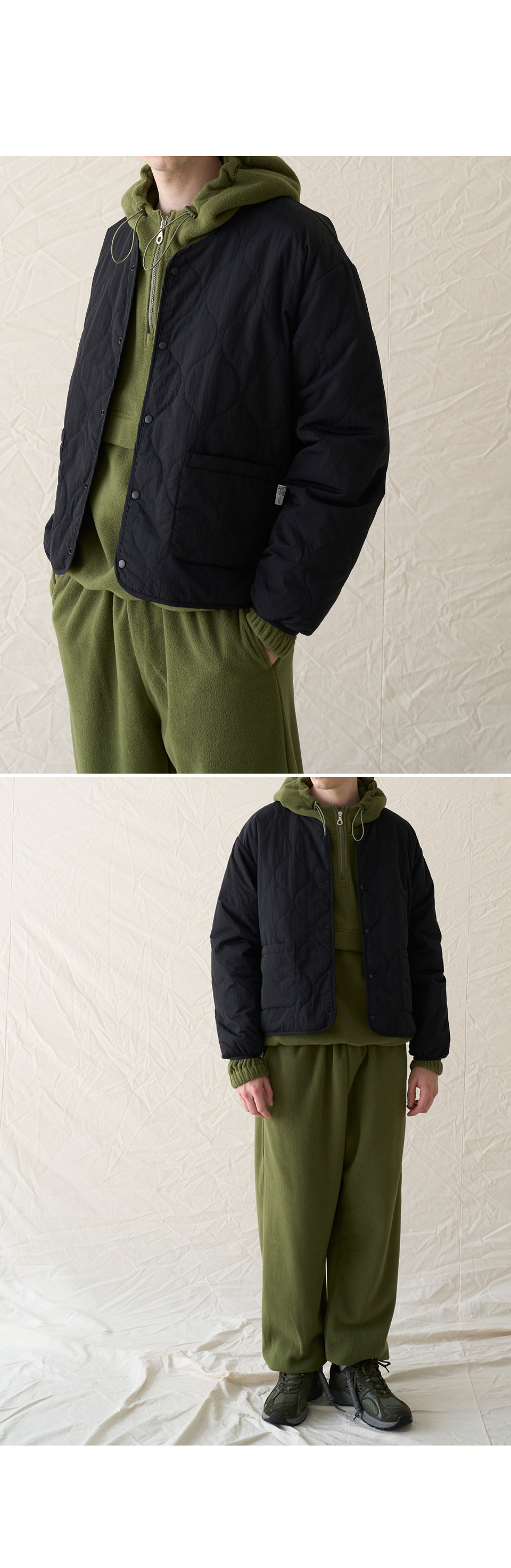 Pocket Snapbutton Quilting Jumper CSOj-105 (black)