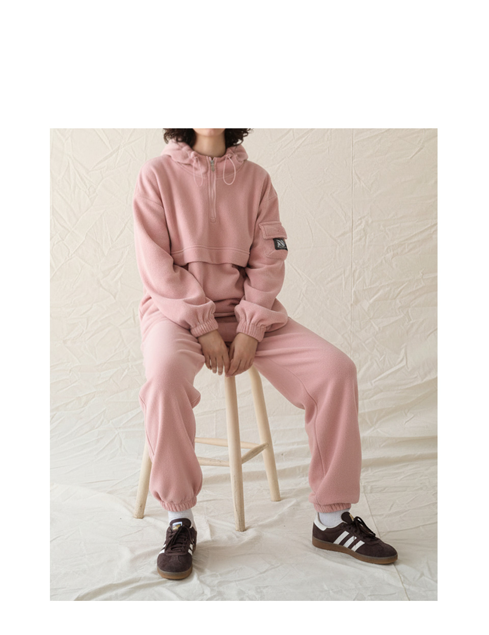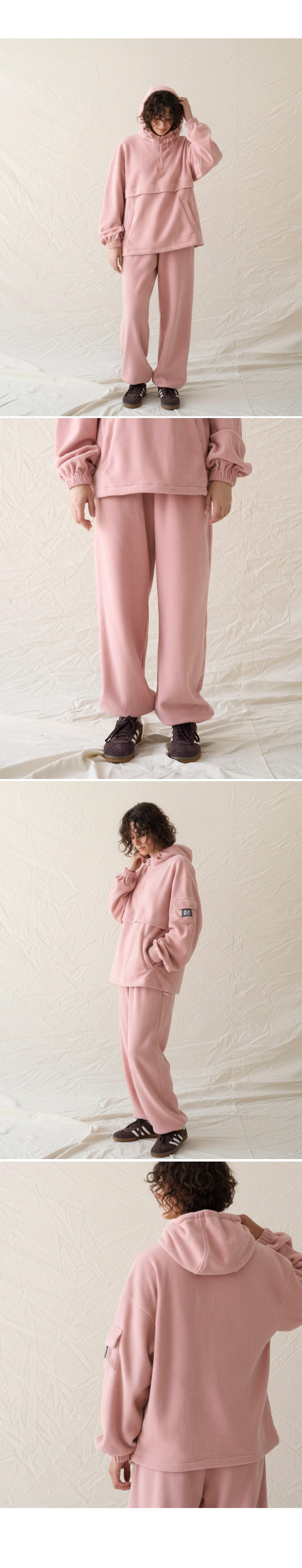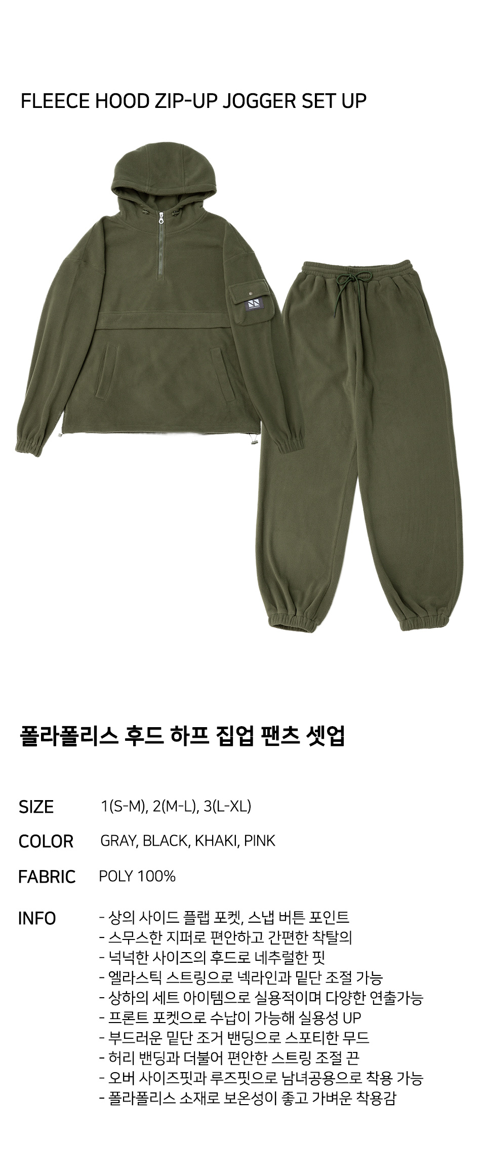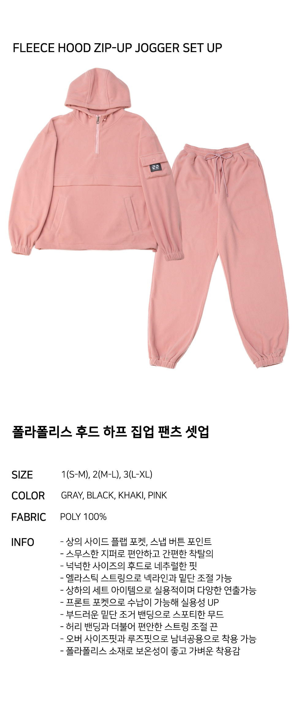 / Fleece Hood Zip-Up Jogger Set Up CSOs-020 (Khaki, Gray, Black, Pink)