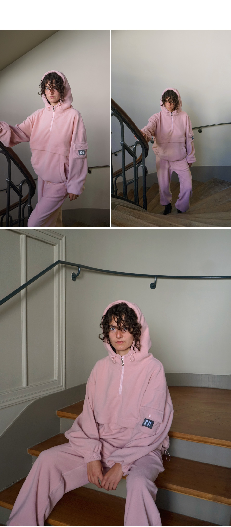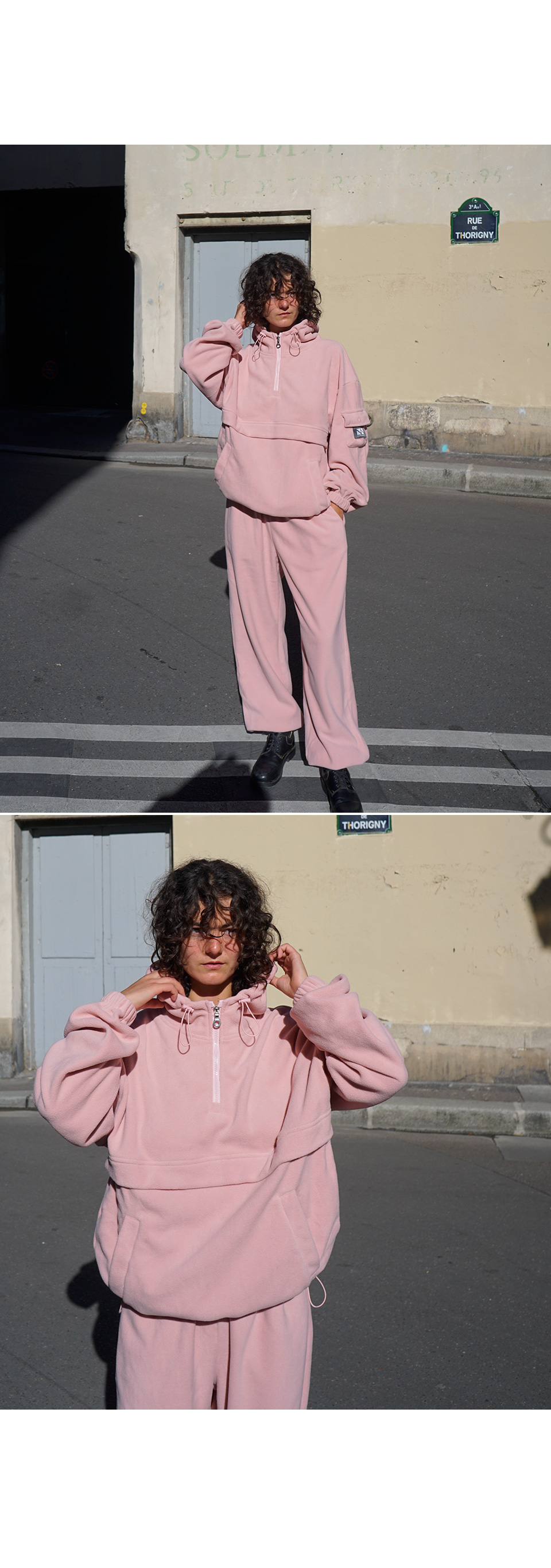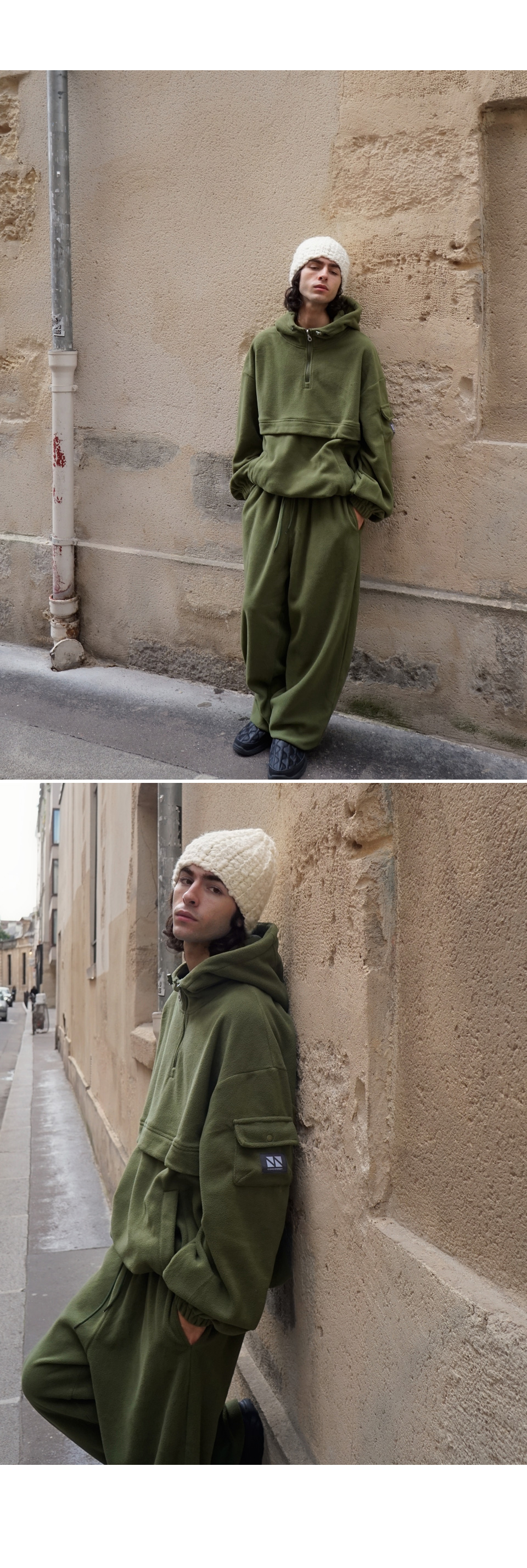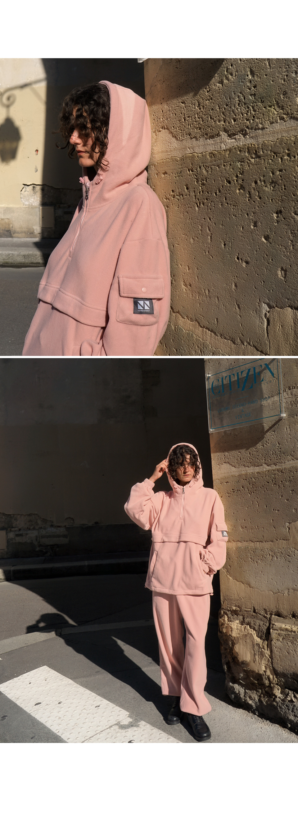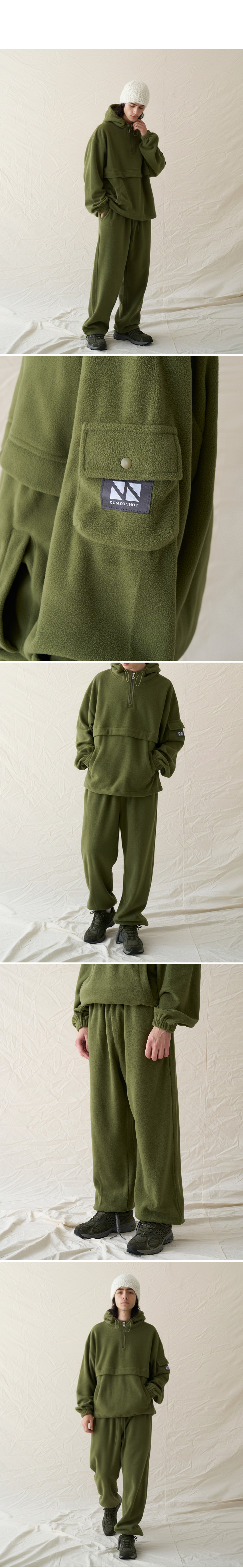 / Fleece Hood Zip-Up Jogger Set Up CSOs-020 (Khaki, Gray, Black, Pink)