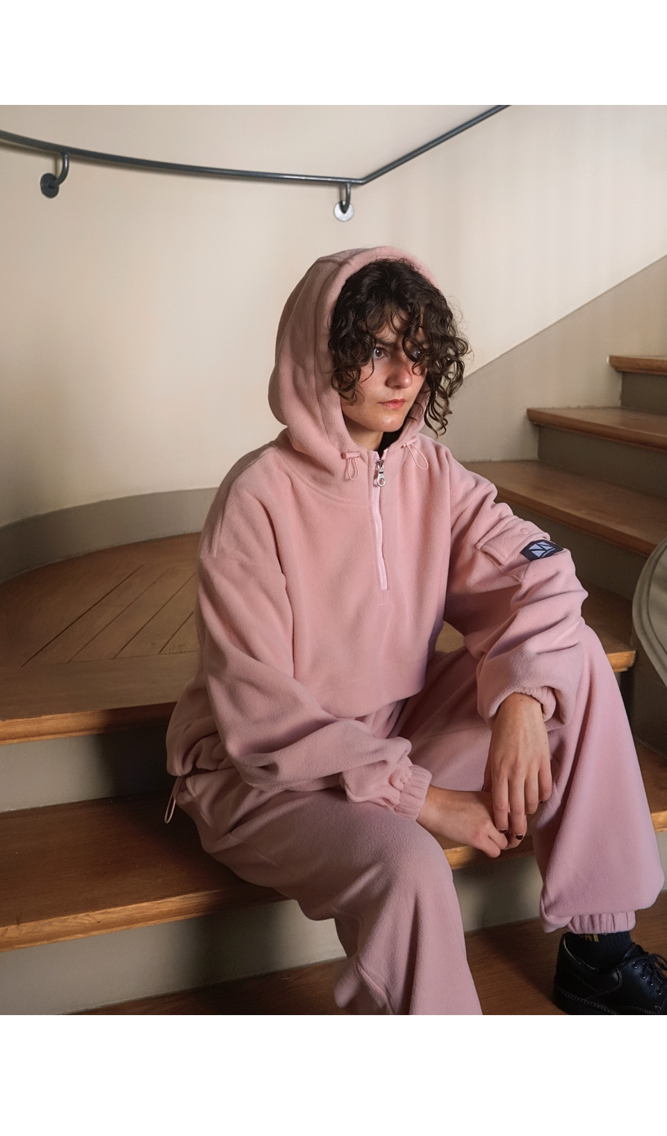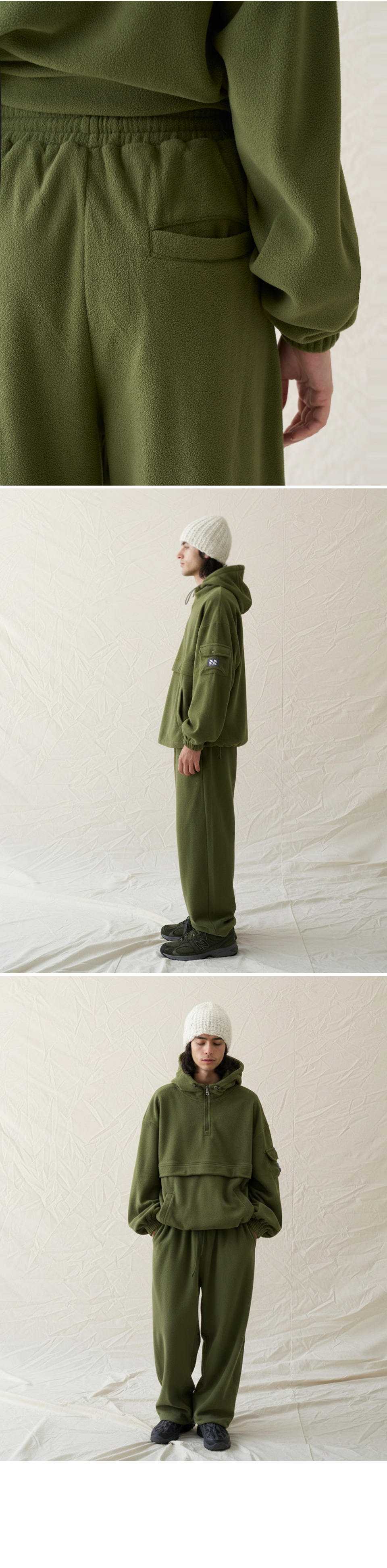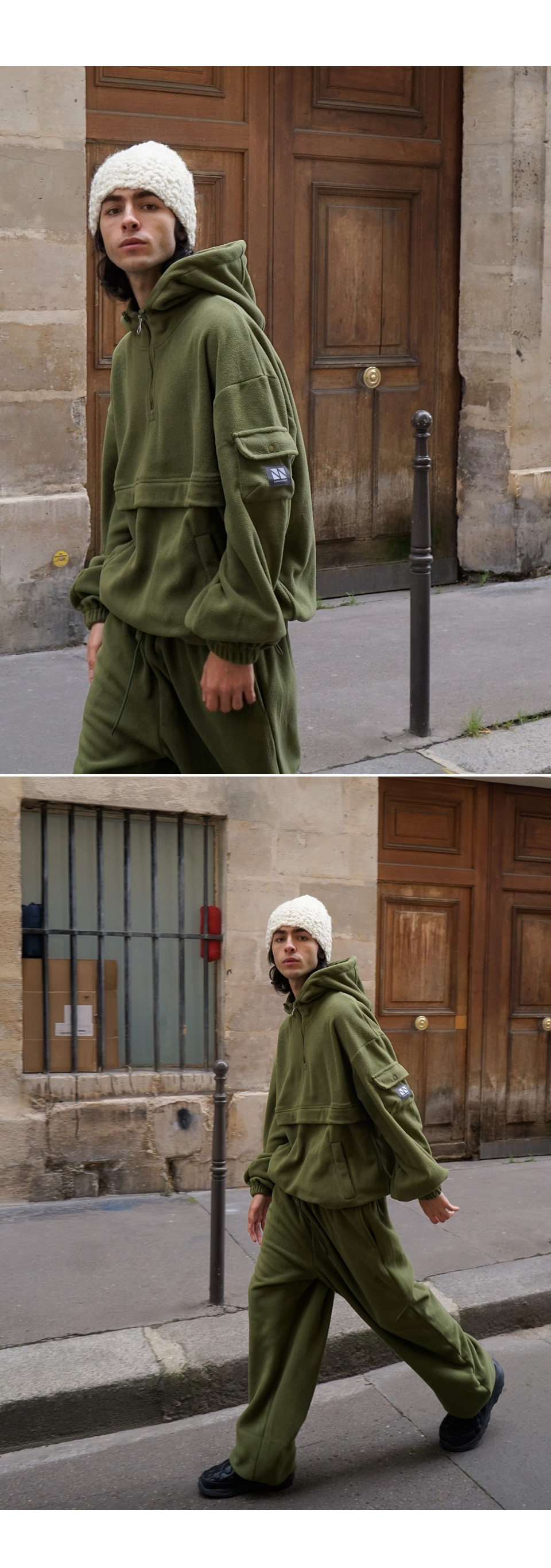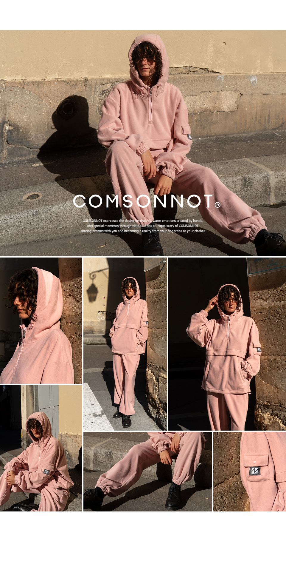 / Fleece Hood Zip-Up Jogger Set Up CSOs-020 (Khaki, Gray, Black, Pink)