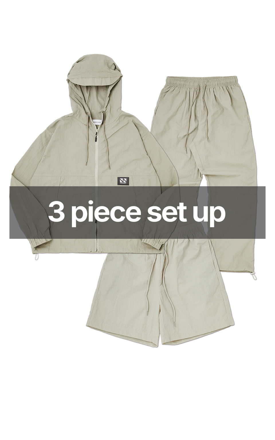 Hoodie Zip Up 3-Piece Full Set Up (Khaki) CSOs-002
