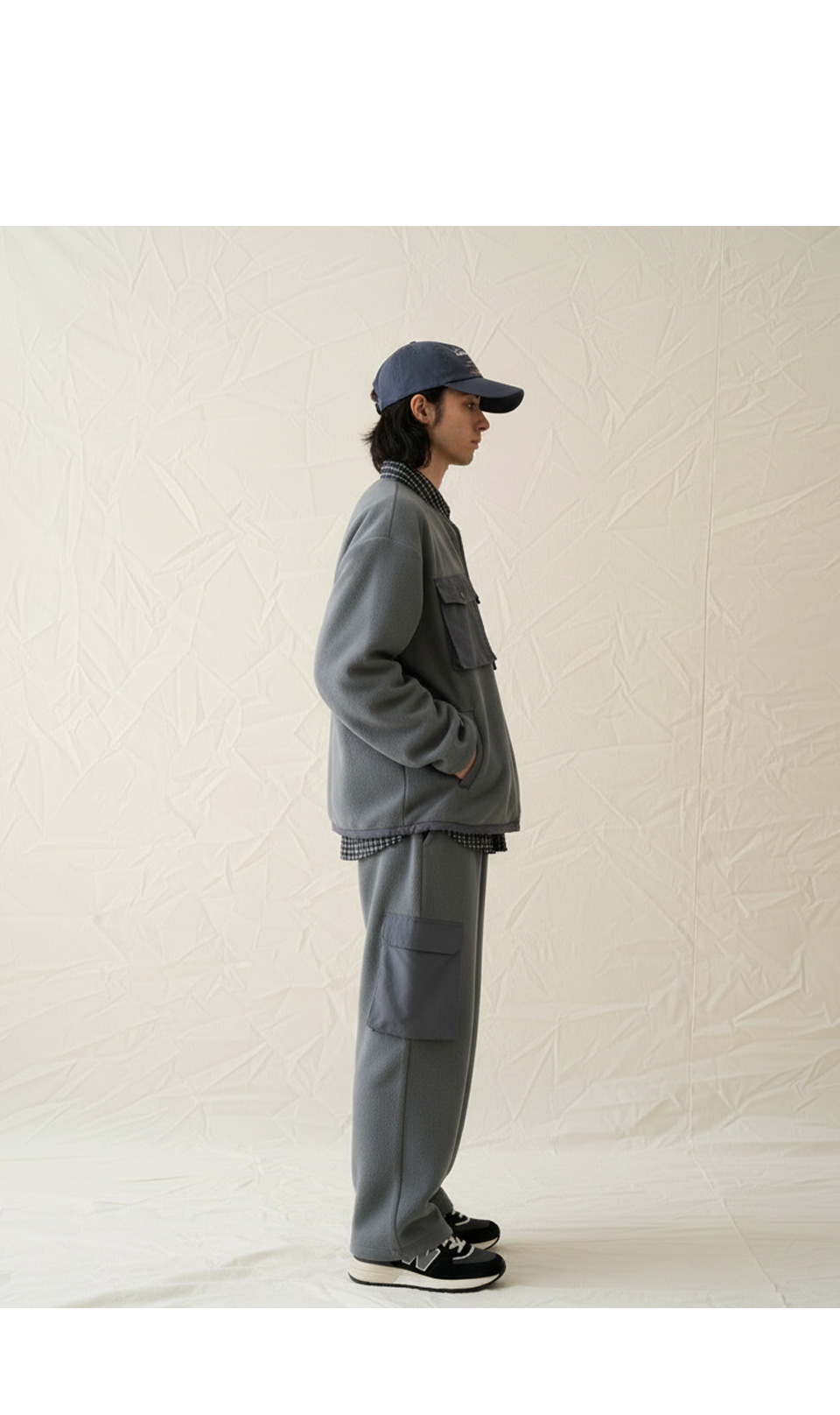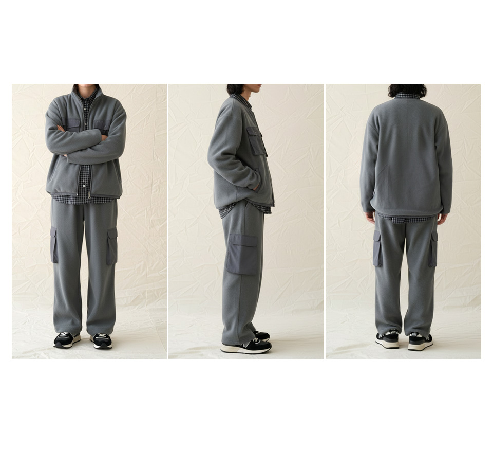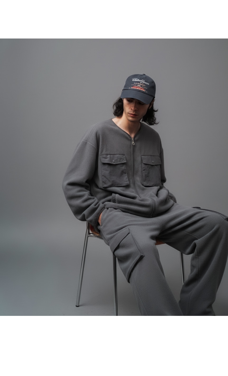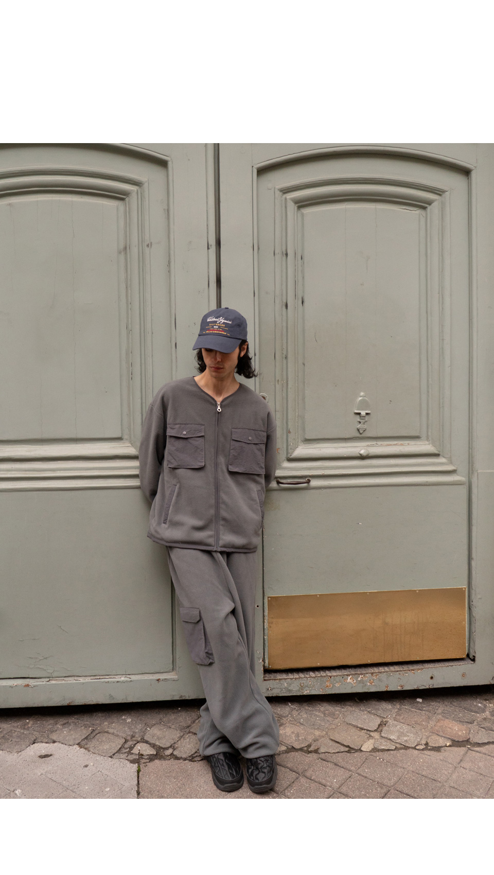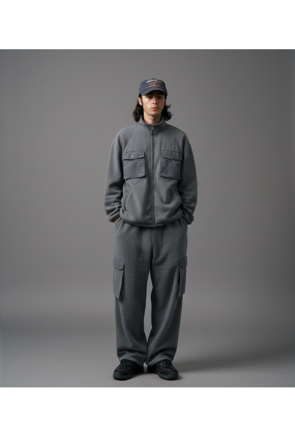 Fleece Jumper Wide Pants Set Up CSOs-019 (gray)